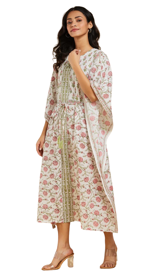 Kaftán estampado floral. Rosa