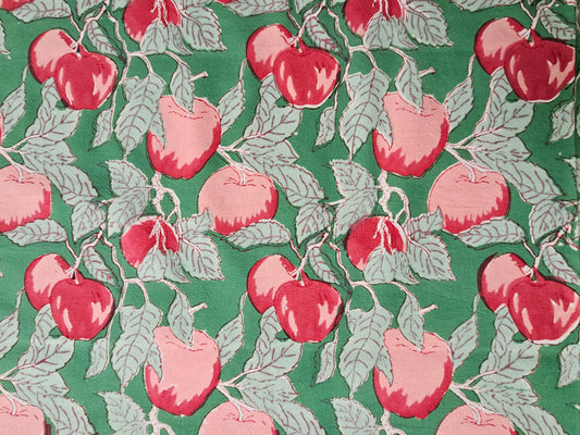 Mantel rectangular 100% algodón estampado a mano. Manzanas