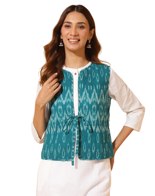 Chaleco tejido Ikat. Turquesa