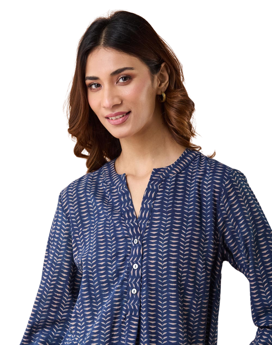 Blusa manga larga estampada. Dabu índigo