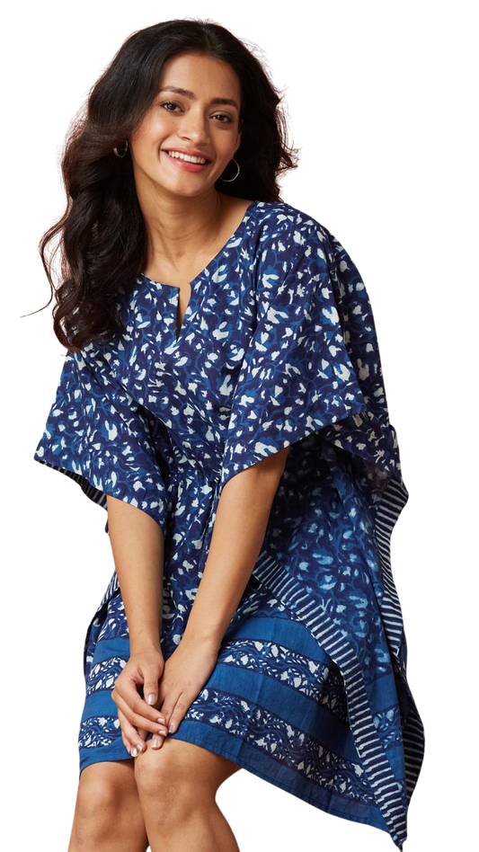 Kaftán corto estampado Overlay. Indigo
