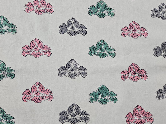 Mantel rectangular 100% algodón estampado a mano. Turquesa, gris y rosa