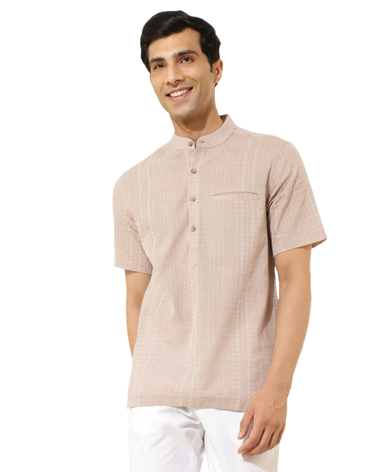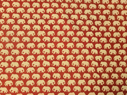 Mantel redondo 100% algodón estampado a mano. Elefantes sobre marrón