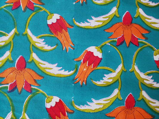 Mantel cuadrado 100% algodón estampado a mano. Protea en turquesa