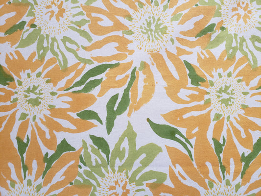 Mantel rectangular 100% algodón estampado a mano. Girasoles