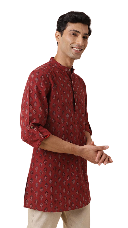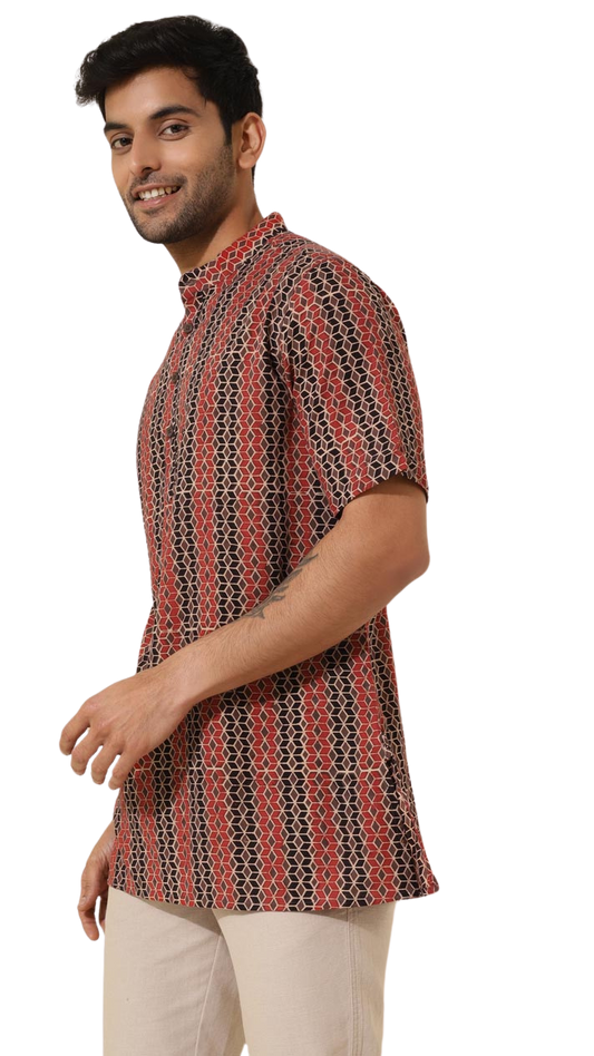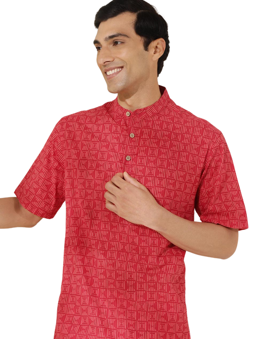 Kurta para hombre. Estampada roja. Manga corta
