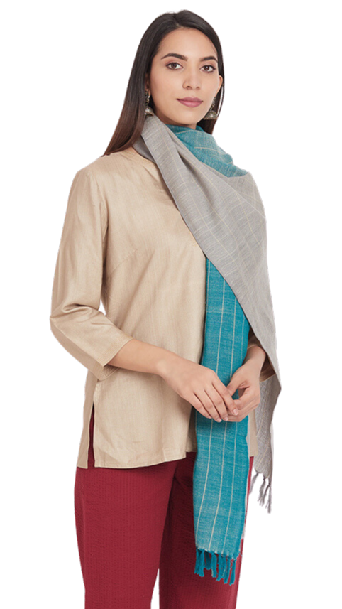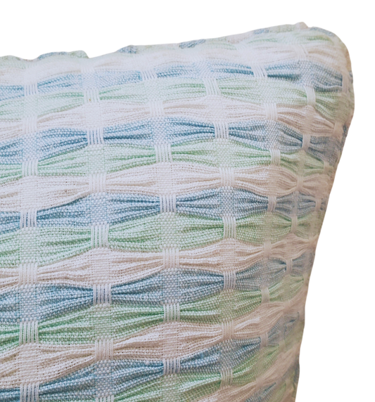 Funda de cojín tejida en telar. Deepali acqua 40x40
