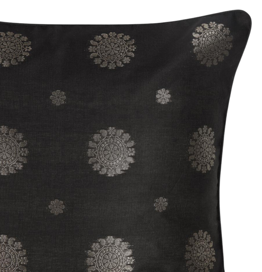 Funda de cojín. Combinación algodón y bordado metálico. Negro 40x40