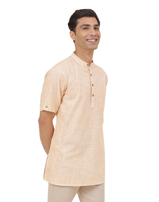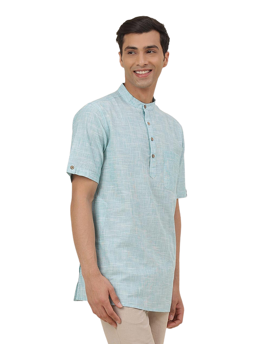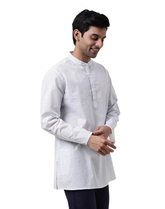 Kurta para hombre. Blanca, Estampado fino. Manga larga