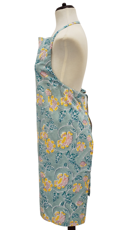 Mantel rectangular 100% algodón estampado a mano. Ipshita verde botella