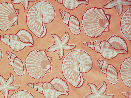 Mantel redondo 100% algodón estampado a mano. Motivos marinos