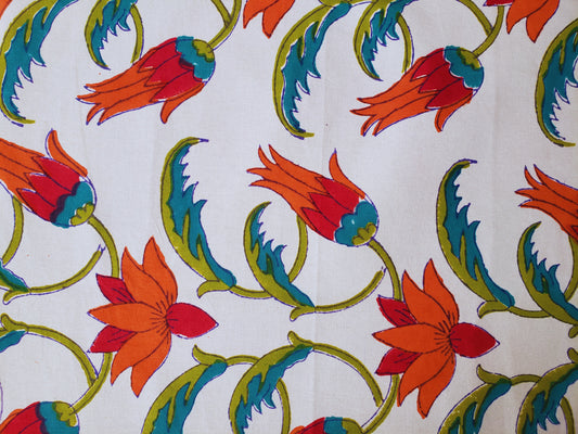 Mantel rectangular 100% algodón estampado a mano. Protea en turquesa