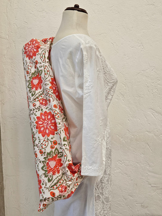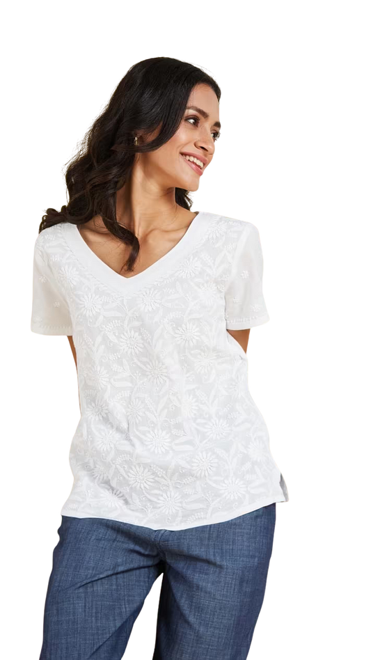 Blusa con bordado chikankari. Básica. Blanca PREVENTA