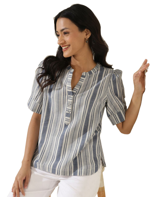 Blusa a rayas. Azul y blanco