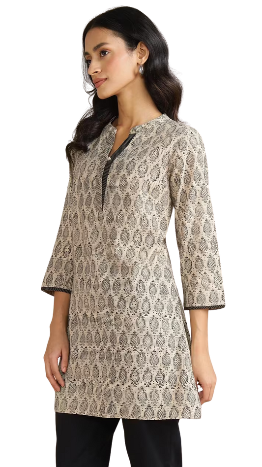 Kurta corta estampada. Beige y negro PREVENTA