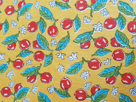 Mantel rectangular 100% algodón estampado a mano. Cerezas
