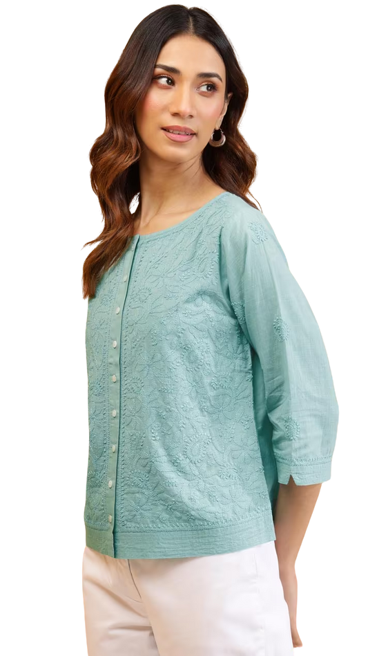 Blusa bordado chikankari. Menta PREVENTA