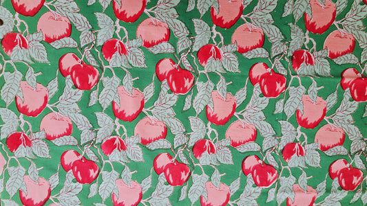 Mantel redondo 100% algodón estampado a mano. Manzanas