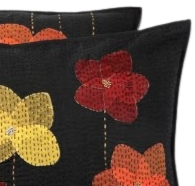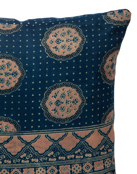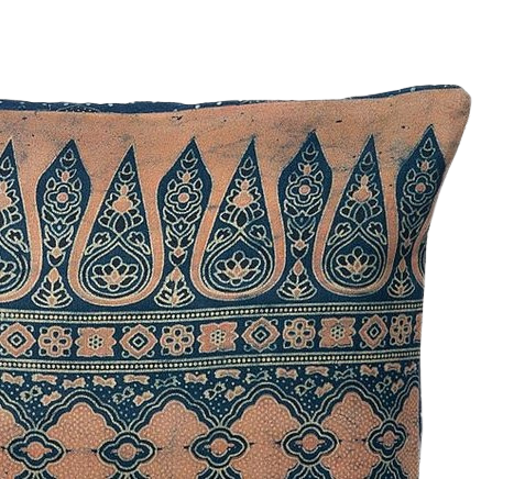 Funda de cojín de algodón estampada. Azul índigo/ocre. Puranya1 40x40
