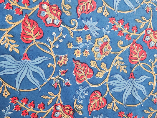 Mantel cuadrado 100% algodón estampado a mano. Ivy azul