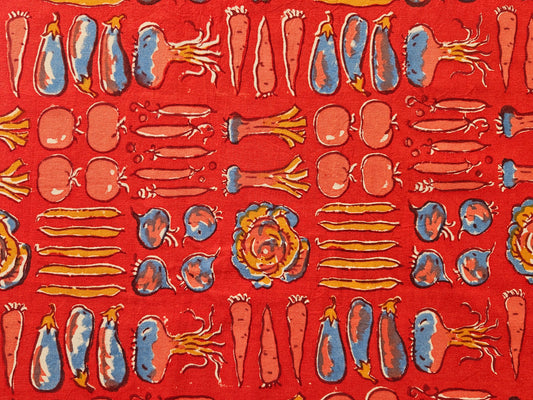 Mantel cuadrado Piñas en rojo. Estampado a mano