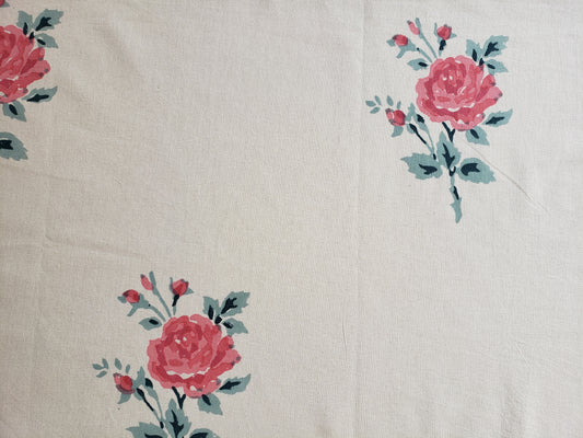 Mantel rectangular 100% algodón estampado a mano. Rosas fondo blanco