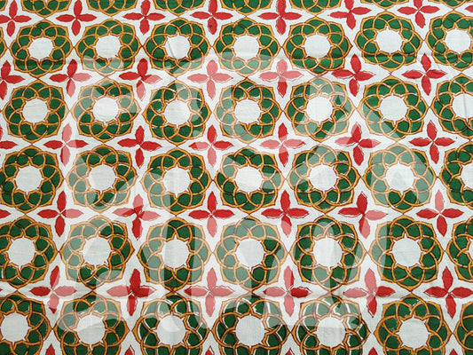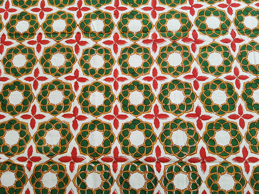 Mantel navideño RECTANGULAR (coronas verdes). Estampado a mano