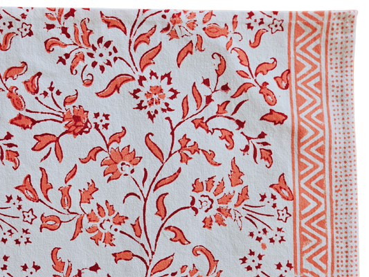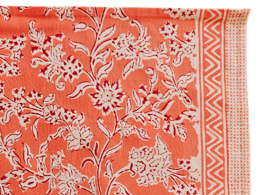 Mantel individual estampado a mano. Rosa coral (blanco)