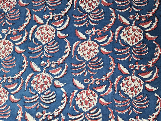 Mantel cuadrado 100% algodón estampado a mano. Pine fondo azul
