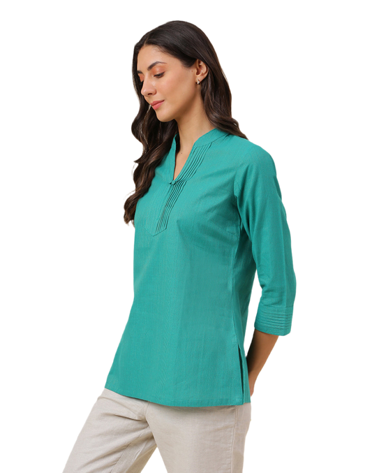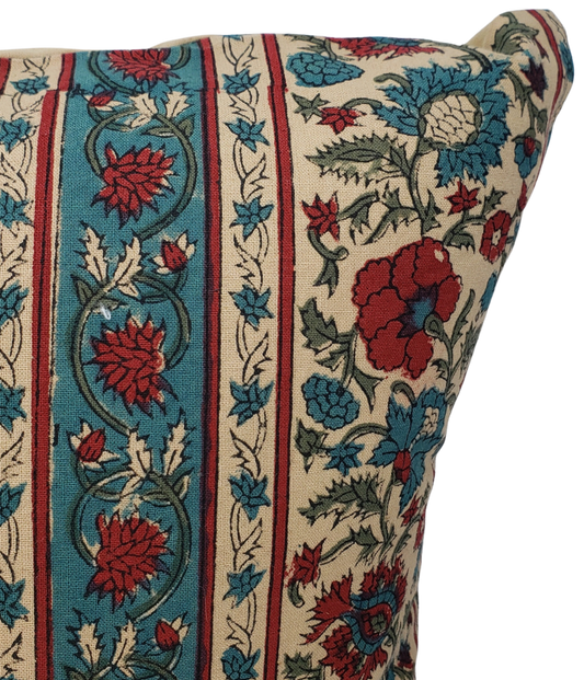 Funda de cojín de algodón estampada. Mehulika turquesa 40x40