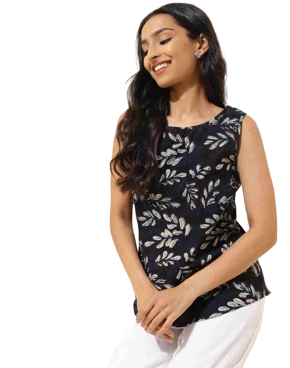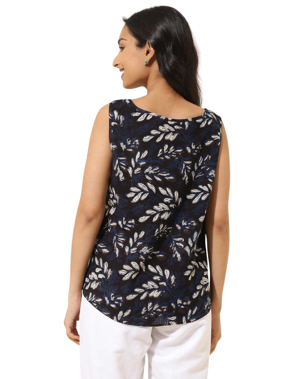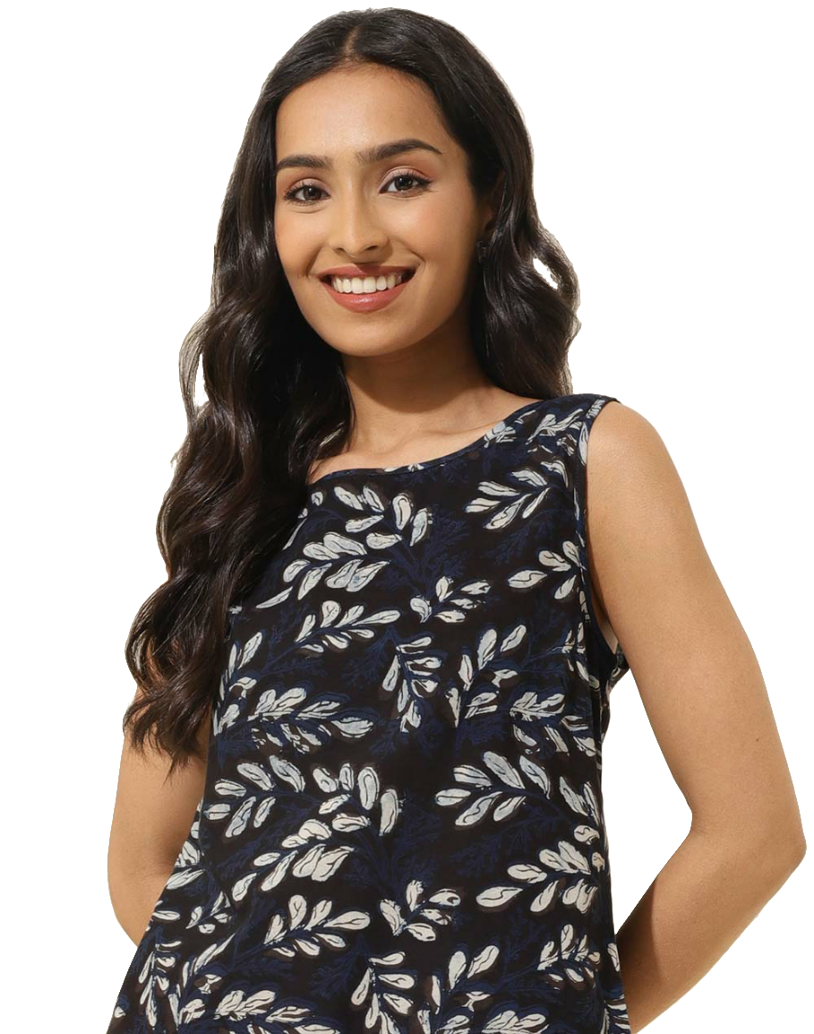 Esta blusa hecha en la India es una pieza única. Está estampada sobre tela 100% algodón son tinte azul índigo natural.