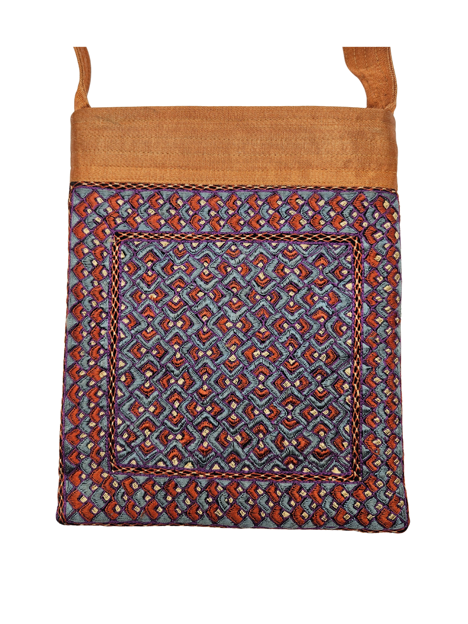 Este elegante bolso bordado de la India está completamente hecho a mano con suma delicadeza. Es de una gran elegancia y el regalo perfecto para cualquier ocasión. El trabajo artesanal lo hace una pieza única e irrepetible.