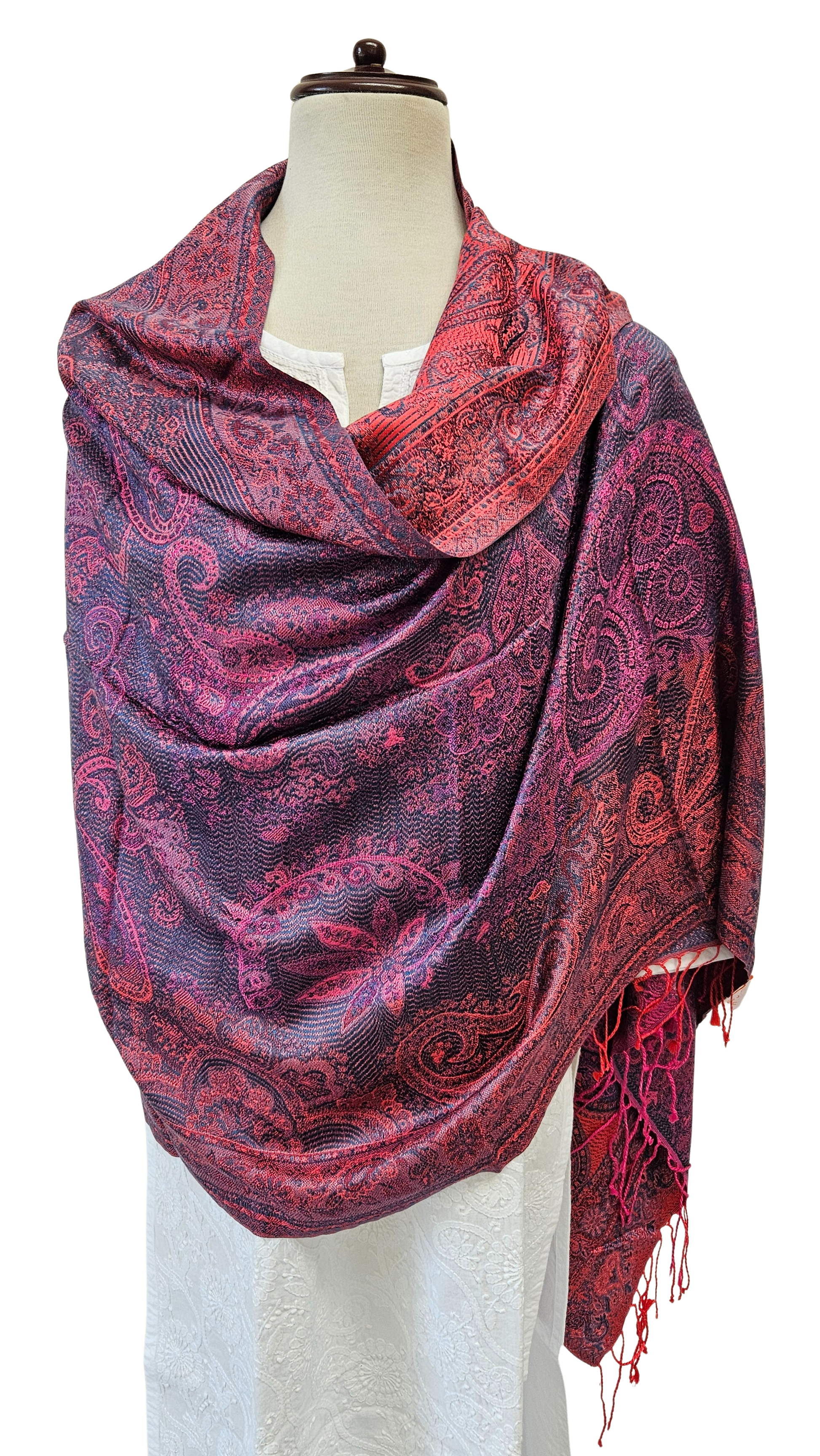 Estos chales son los favoritos de nuestra colección. Elaborados 100% con seda, son un derroche de belleza y elegancia. Se trata de una prenda amplia que alcanza a cubrir bien los hombros.