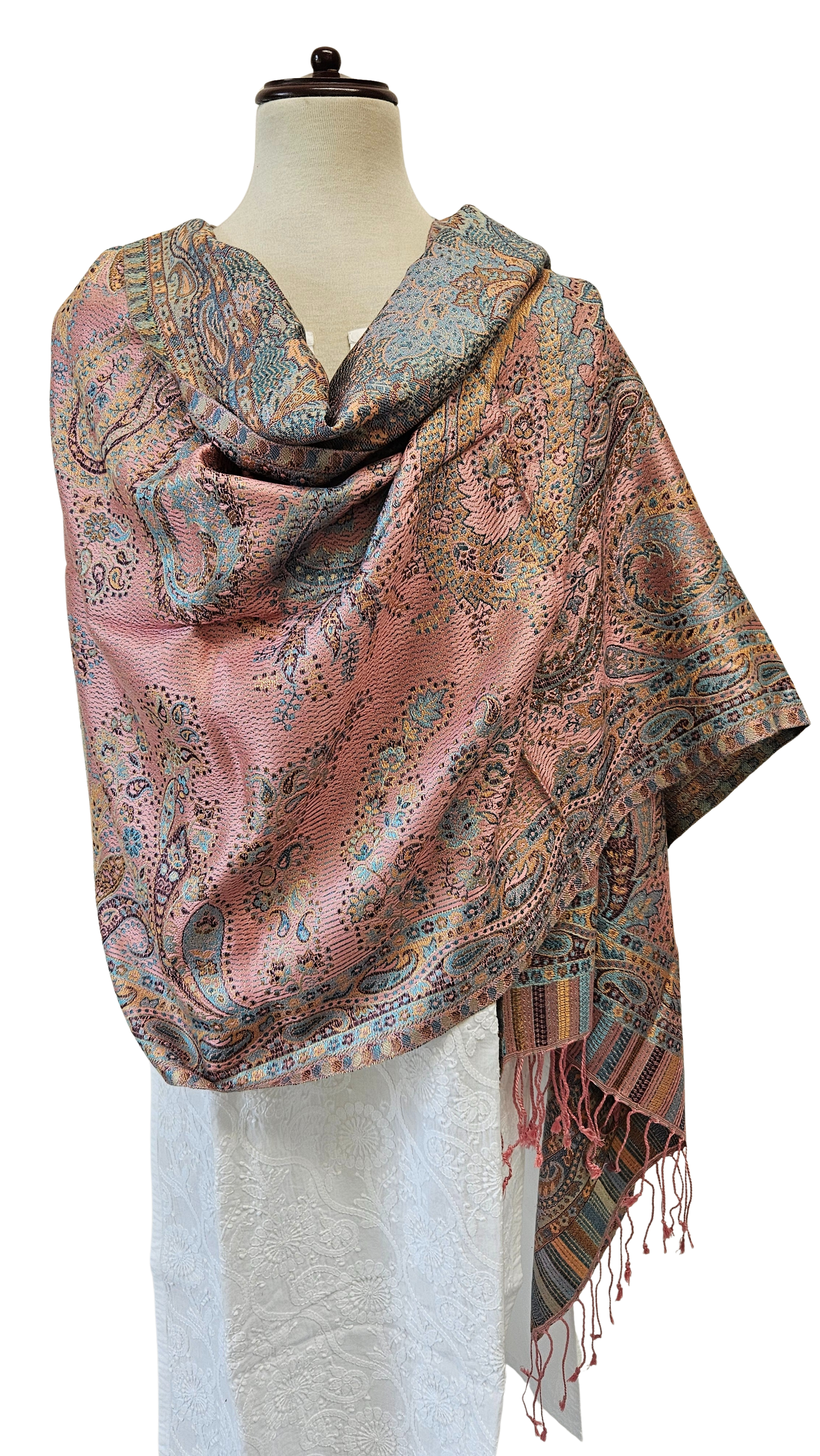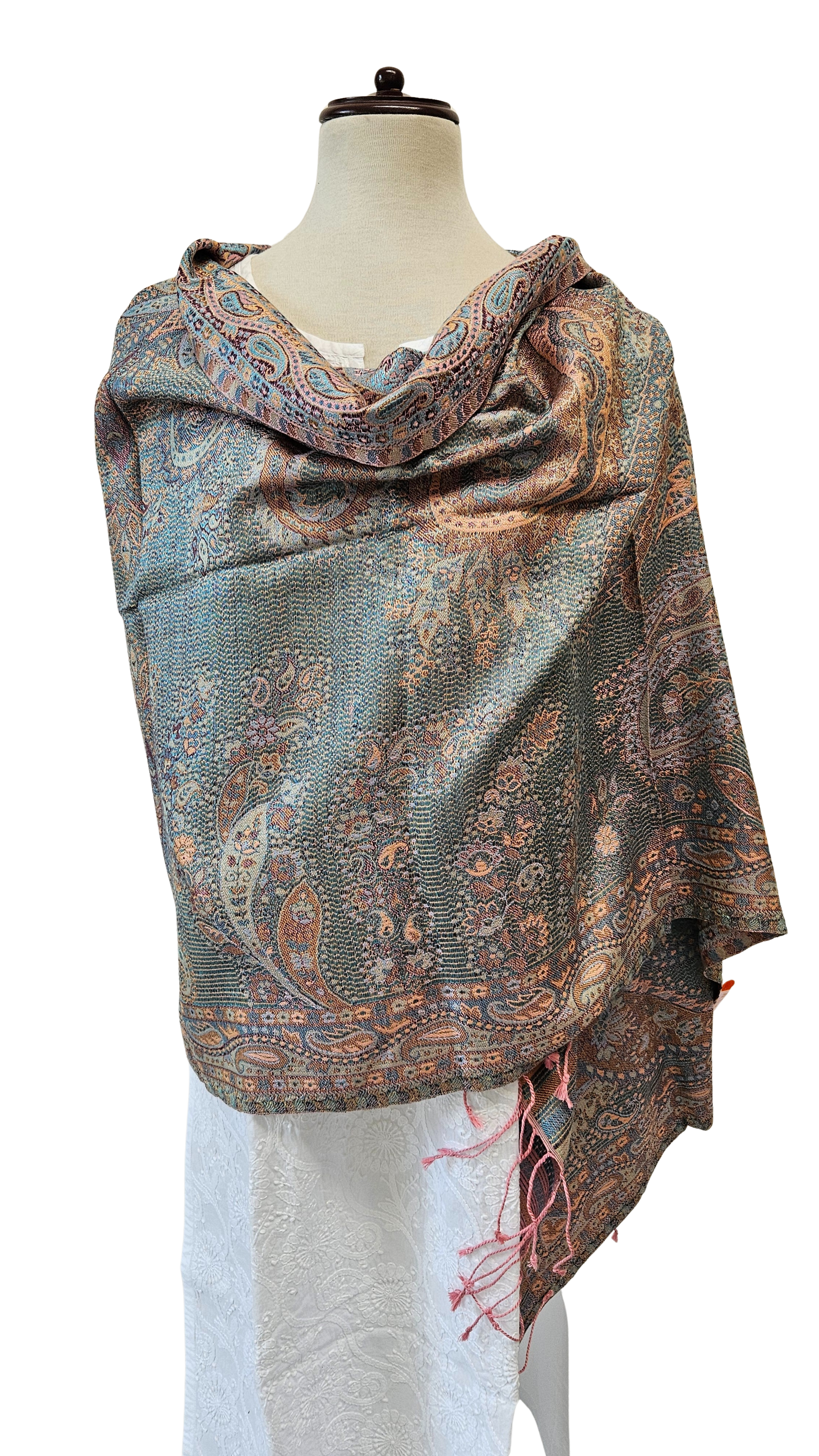 Estos chales son los favoritos de nuestra colección. Elaborados 100% con seda, son un derroche de belleza y elegancia. Se trata de una prenda amplia que alcanza a cubrir bien los hombros.