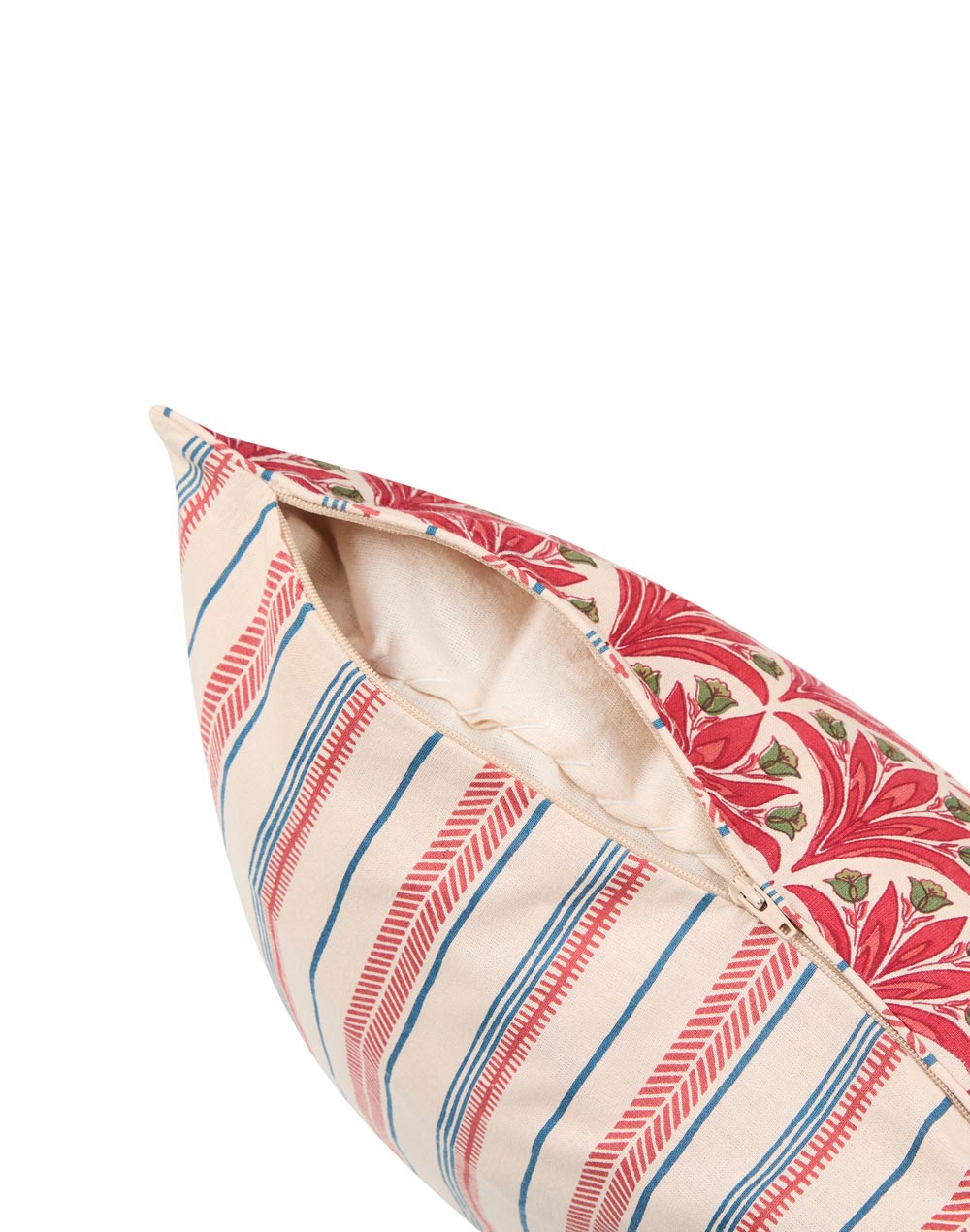 Este hermoso cojín está estampado completamente a mano con la técnica ancestral de sellos de madera.