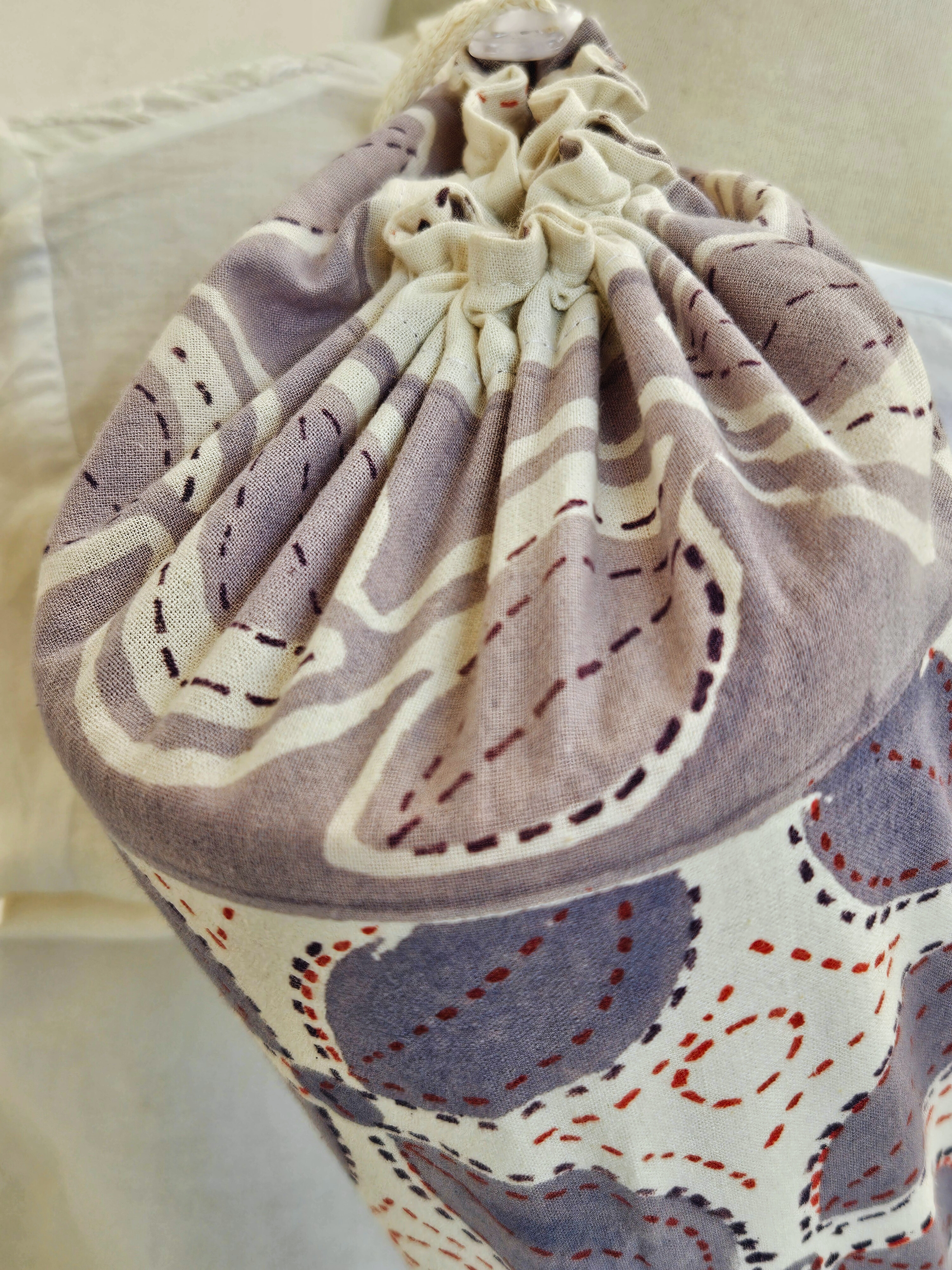 Aquéllos que están estampados con colores obscuros —especialmente los tonos azules que están hechos con azul añil natural— DEBEN lavarse en seco la primera vez. Esto ayuda a fijar el color. Después ya pueden lavarse en casa. Si no son lavados en seco NO podemos garantizar el color.
