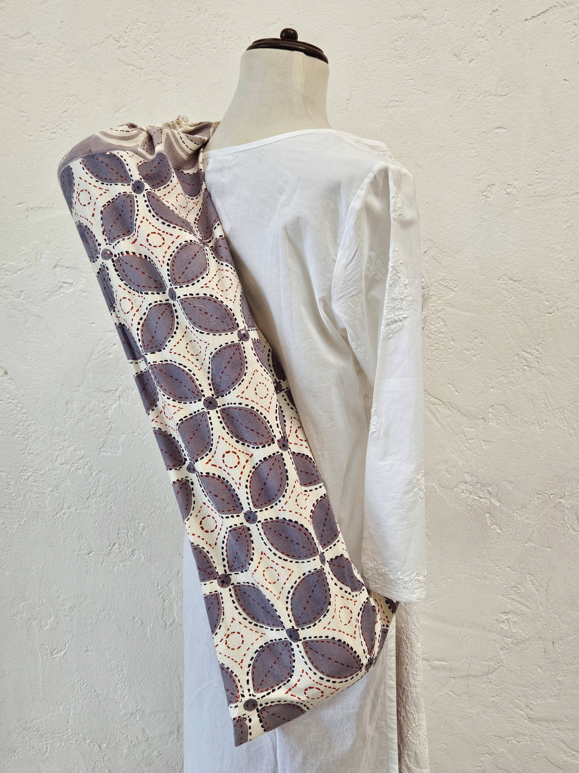 Estampada a mano en la India con la ancestral técnica de sellos de madera.
