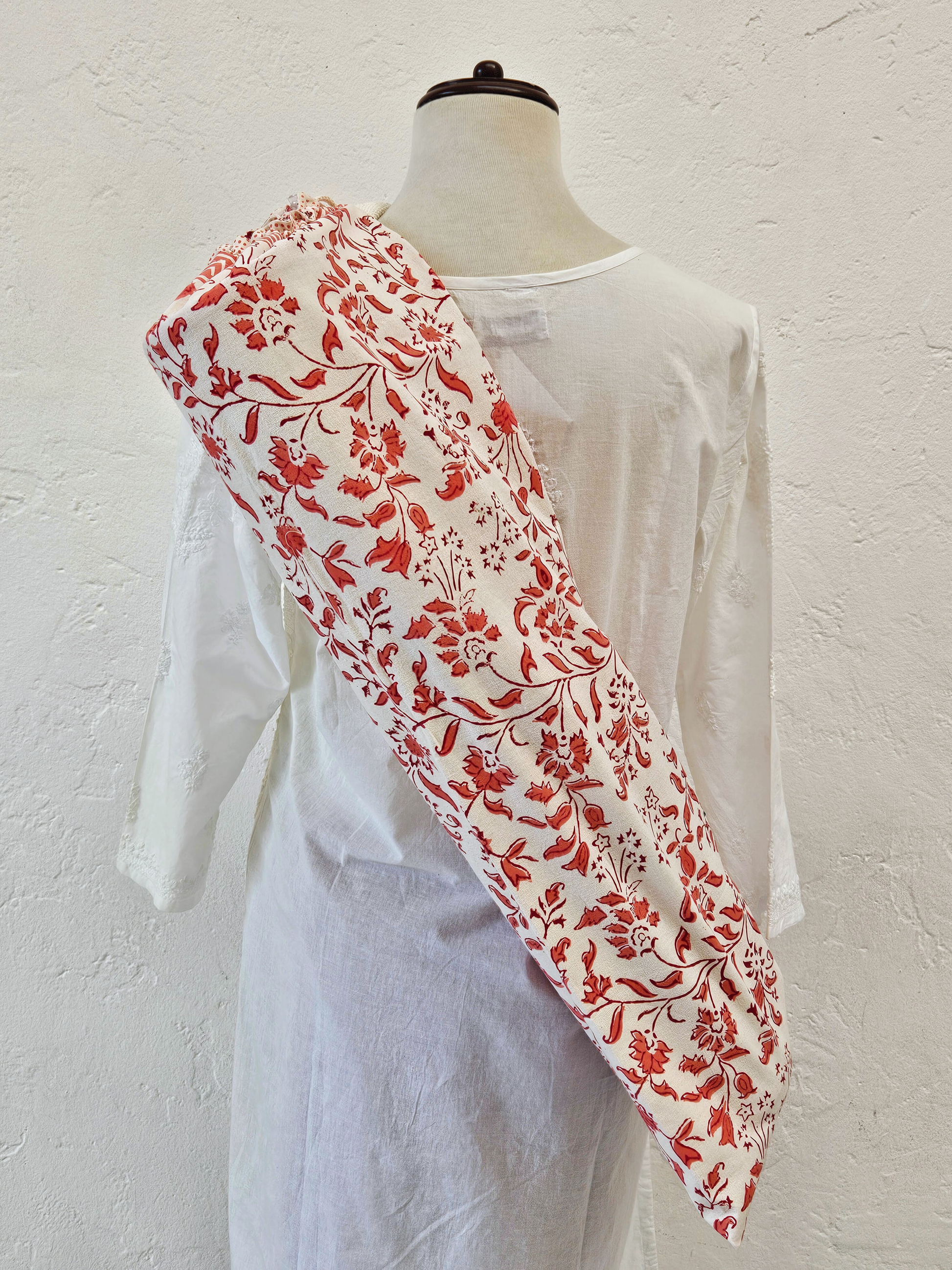 Estampada a mano en la India con la ancestral técnica de sellos de madera.
