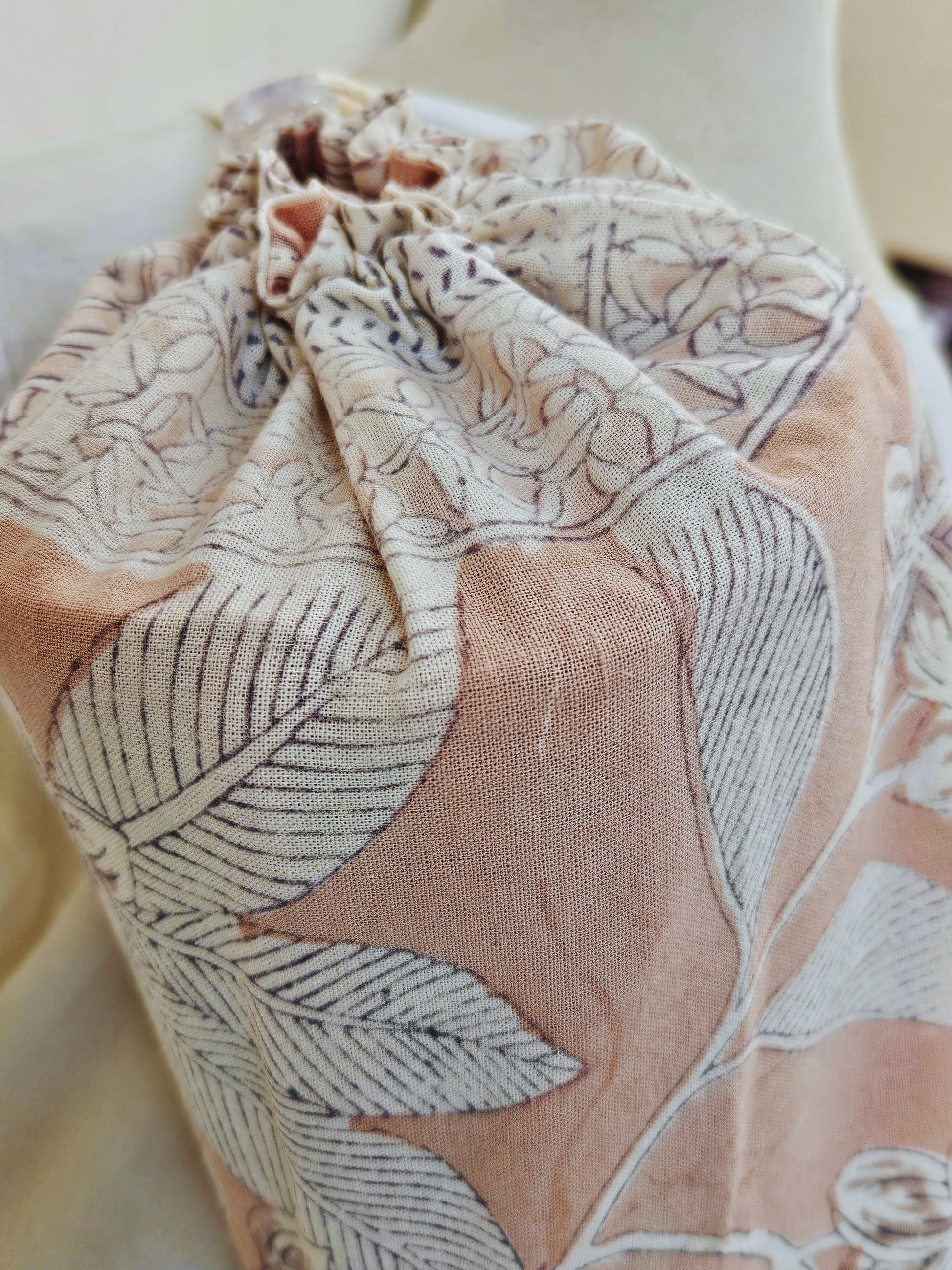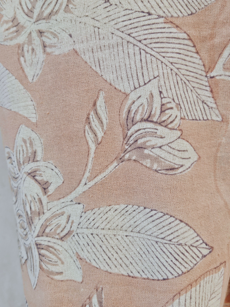 Estampada a mano en la India con la ancestral técnica de sellos de madera.