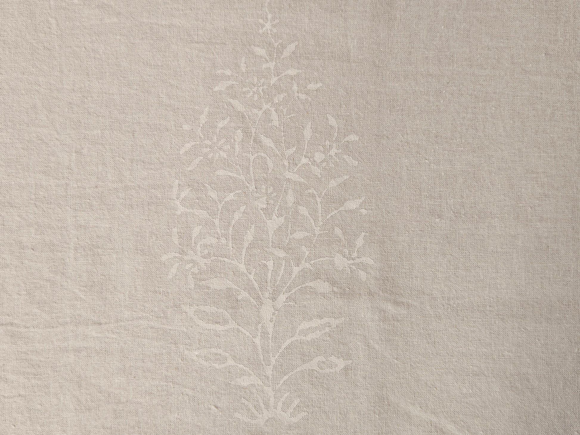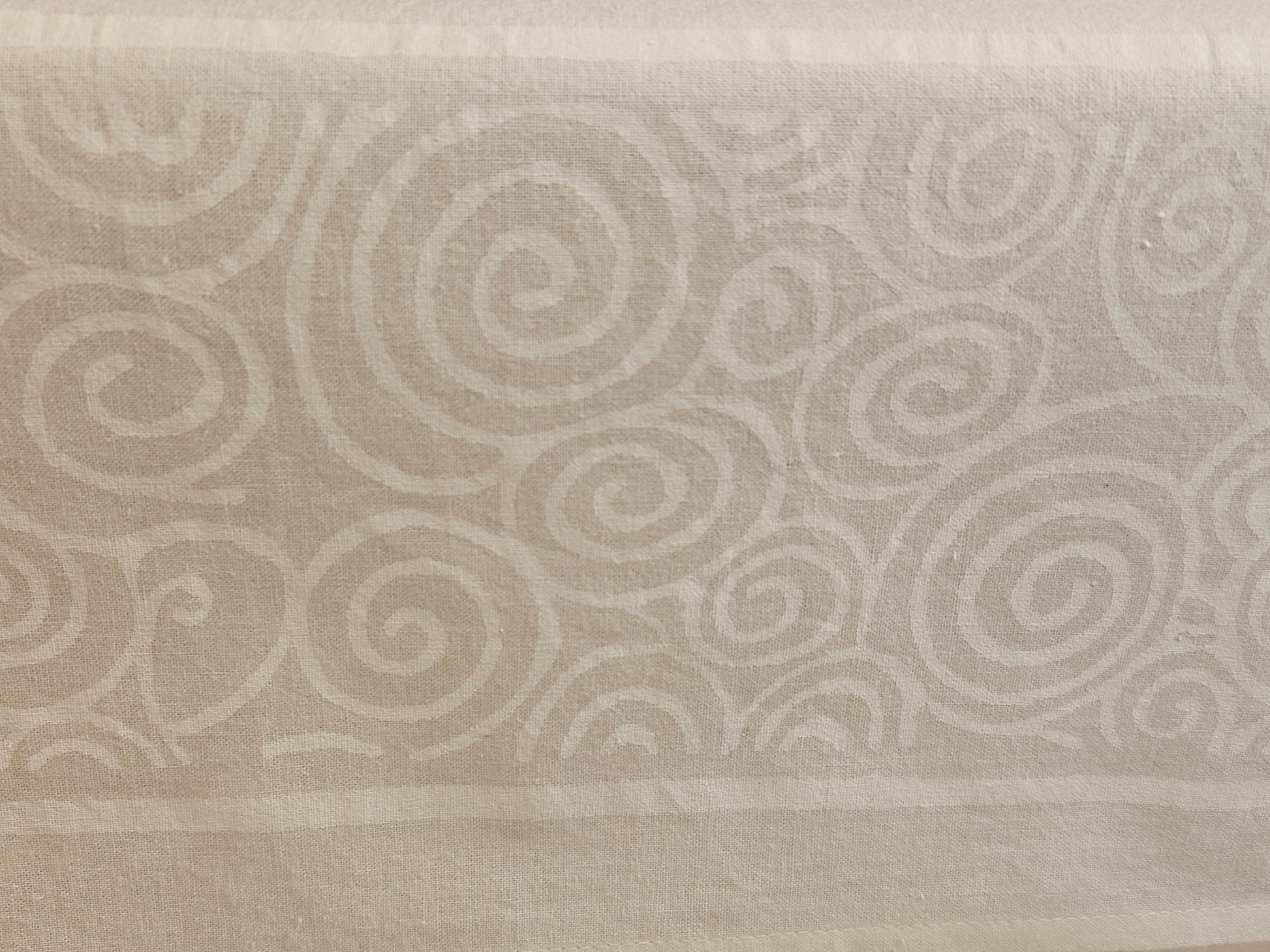 Mantel cuadrado 100% algodón estampado a mano. Blanco sobre blanco