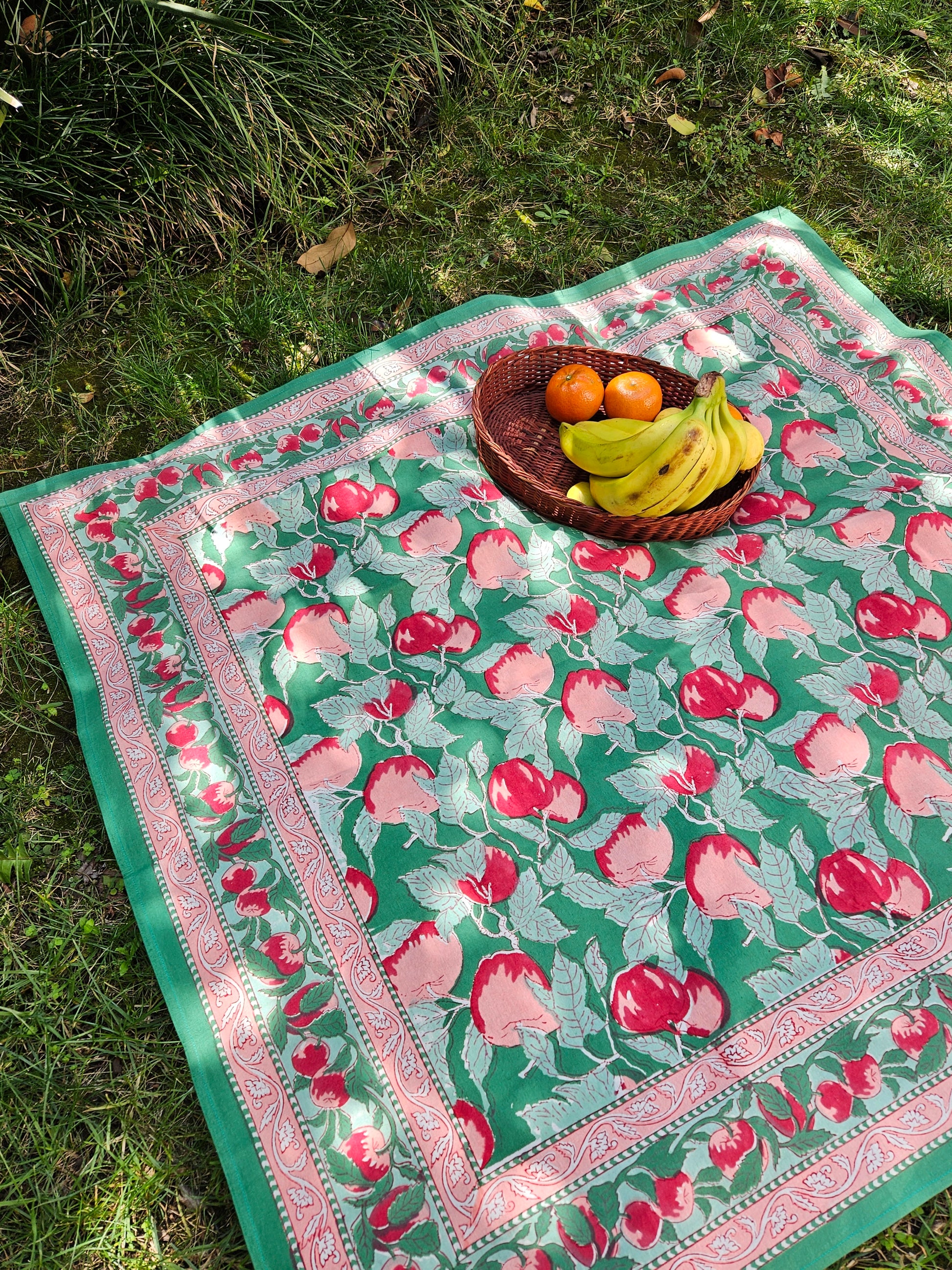 Mantel cuadrado 100% algodón estampado a mano. Manzanas
