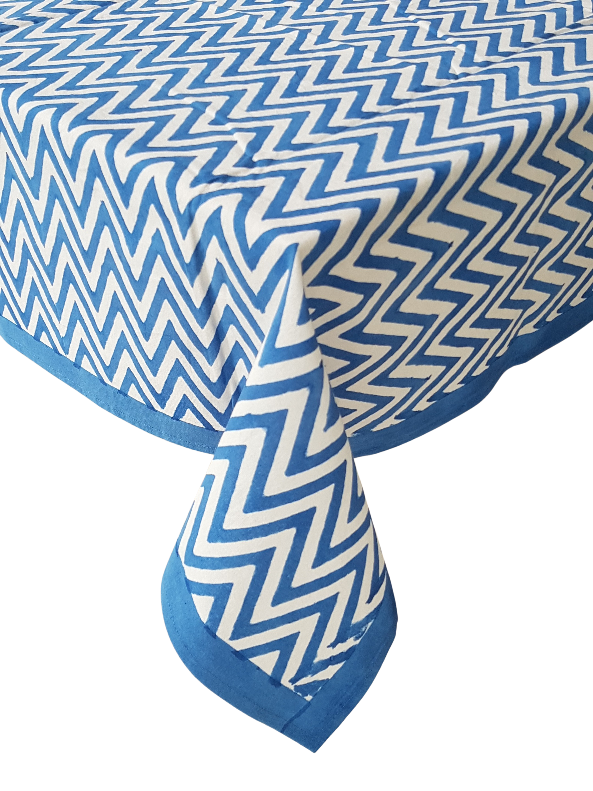 Precioso mantel estampado a mano con brillantes colores. Este mantel está estampado usando la antigua técnica de sellos de madera. El trabajo es completamente a mano y sigue una tradición de más de 4000 mil años. Un arte en extinción cuyos resultados son únicos y espectaculares.