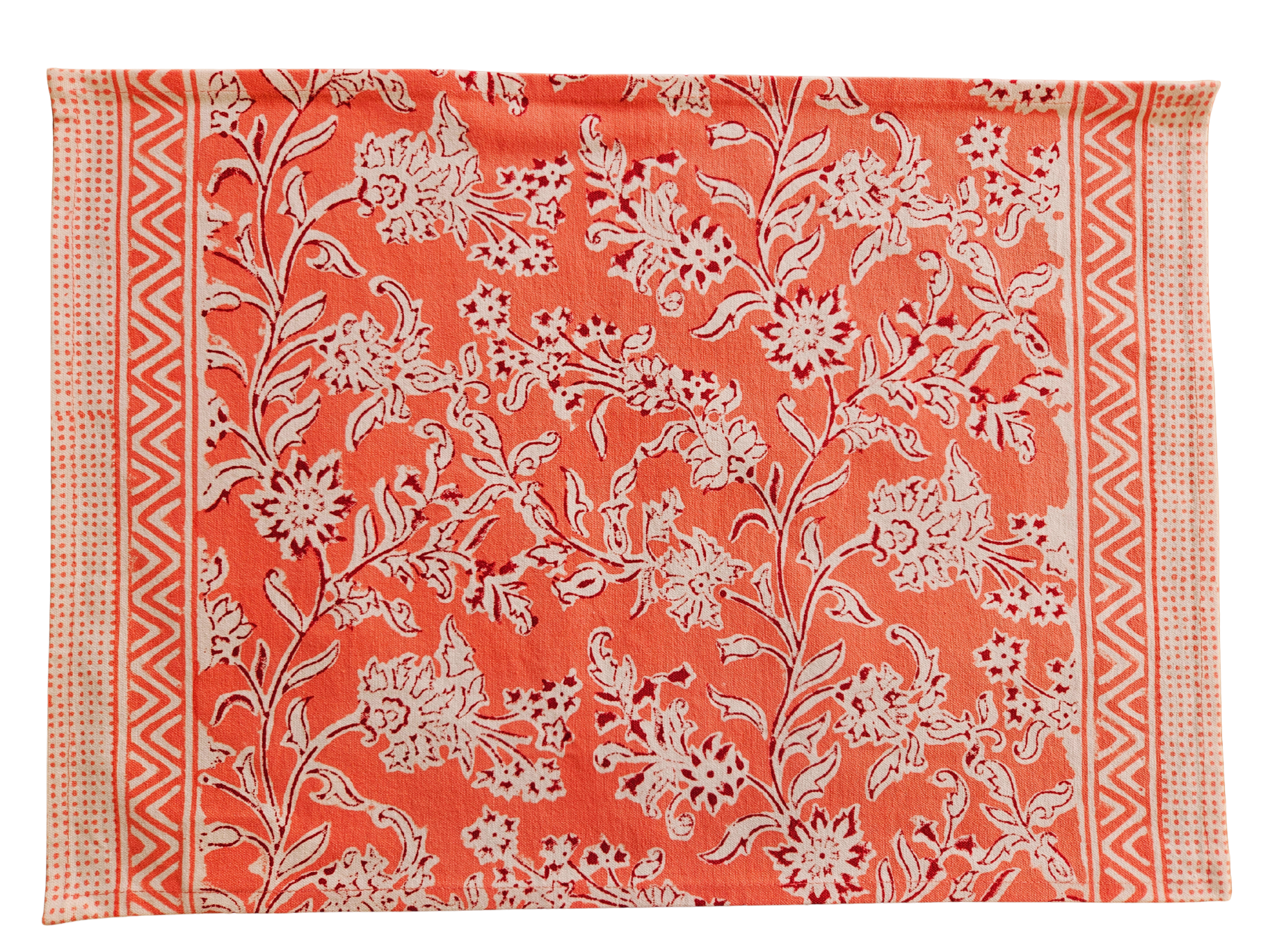 Precioso mantel individual estampado a mano con la antigua técnica de sellos de madera. Tela 100% algodón. Hecho en la India