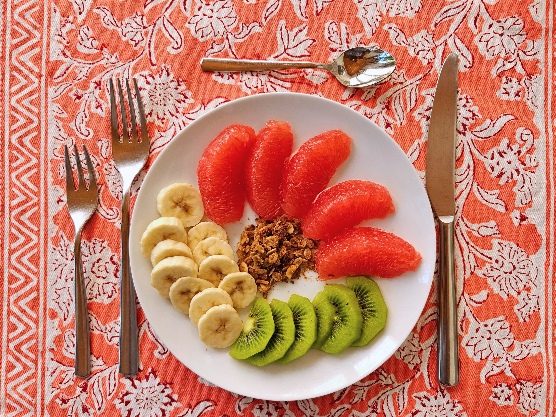 Mantel individual estampado a mano. Rosa coral