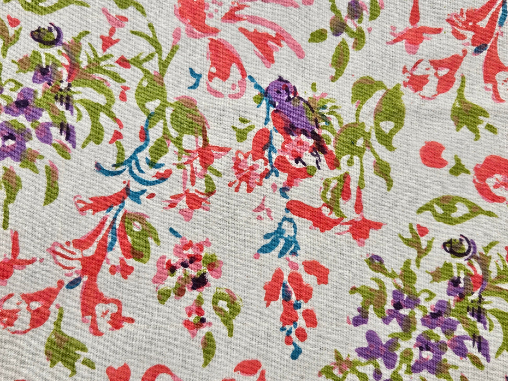 Precioso mantel estampado a mano con brillantes colores. Este mantel está estampado usando la antigua técnica de sellos de madera. El trabajo es completamente a mano y sigue una tradición de más de 4000 mil años. Un arte en extinción cuyos resultados son únicos y espectaculares.