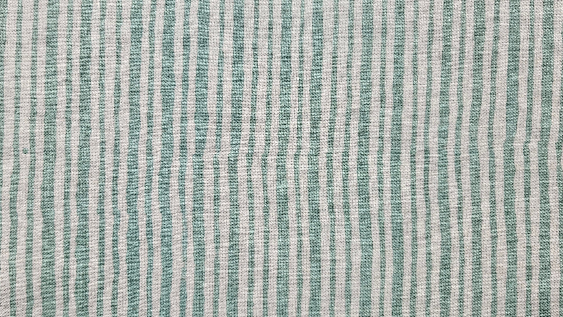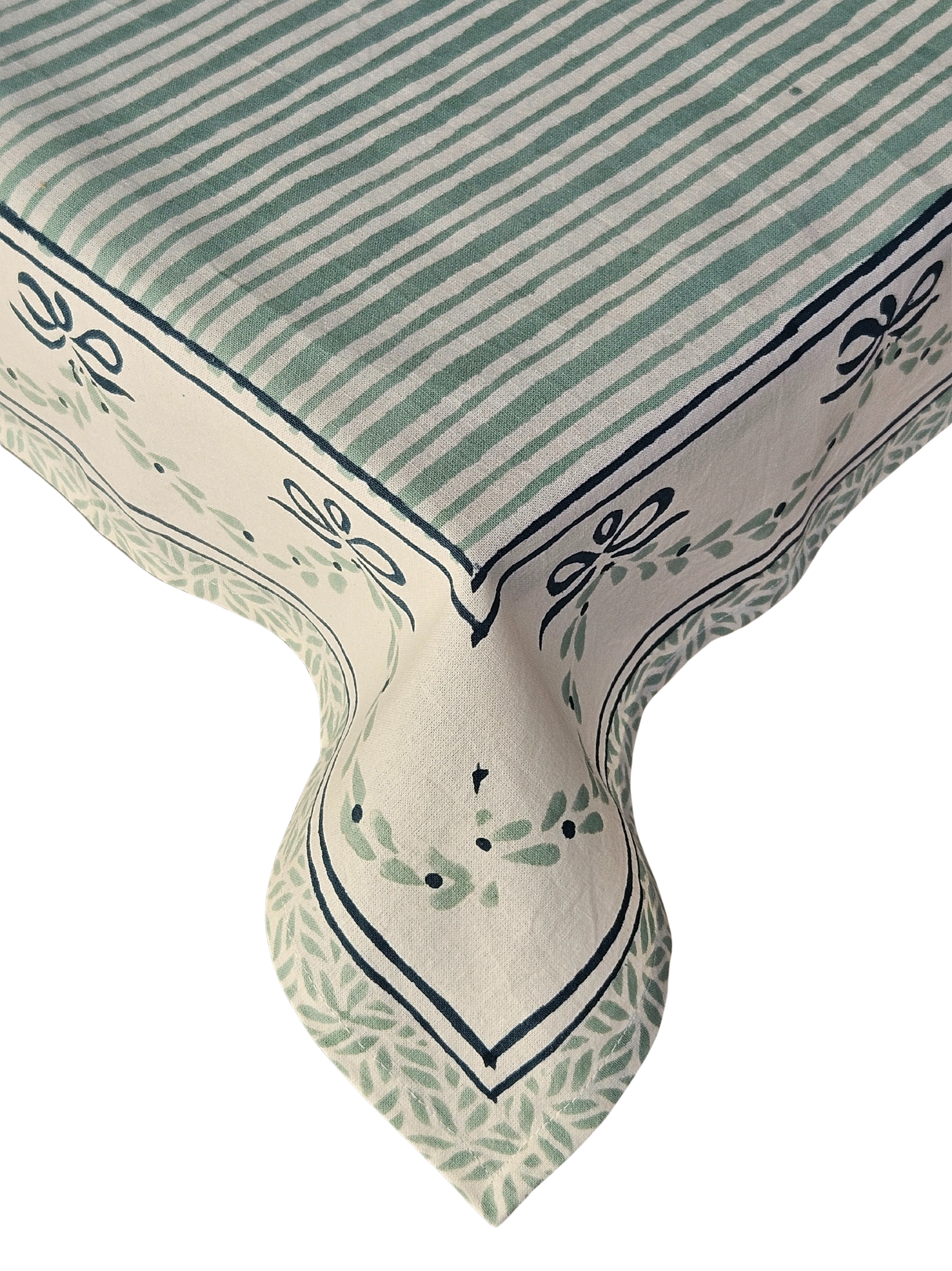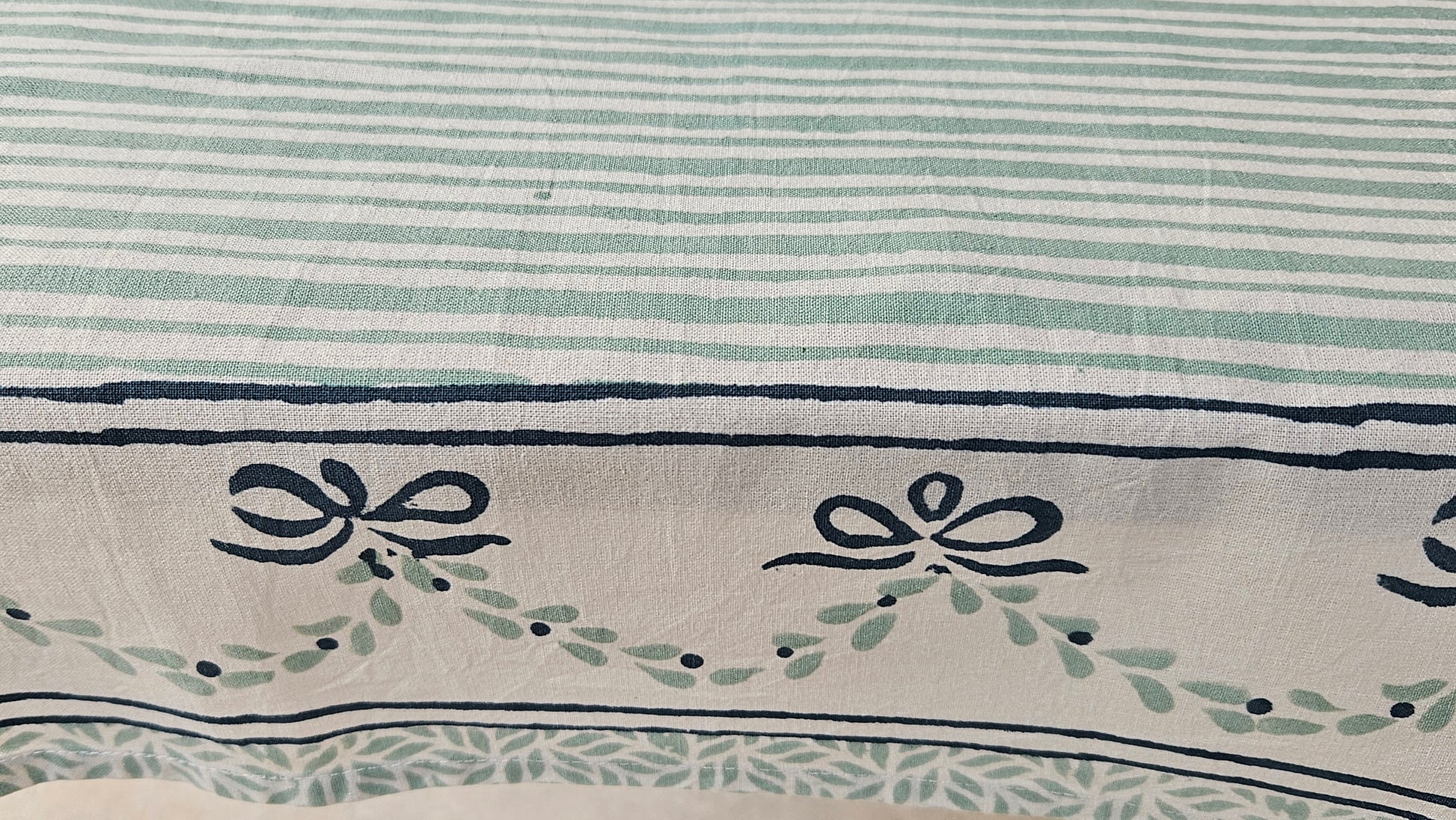 Mantel rectangular 100% algodón estampado a mano. Rayas verde