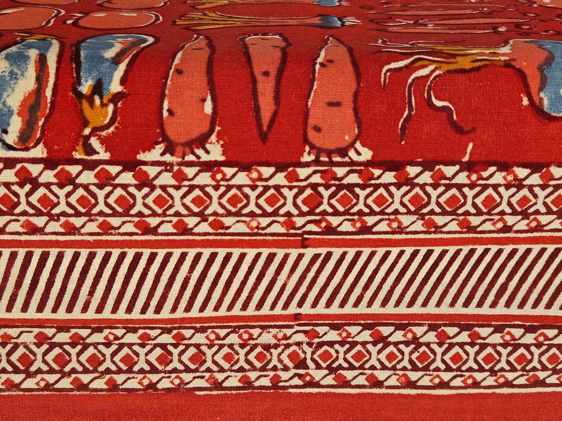 Tela 100% algodón. Estampado a mano con brillantes colores.