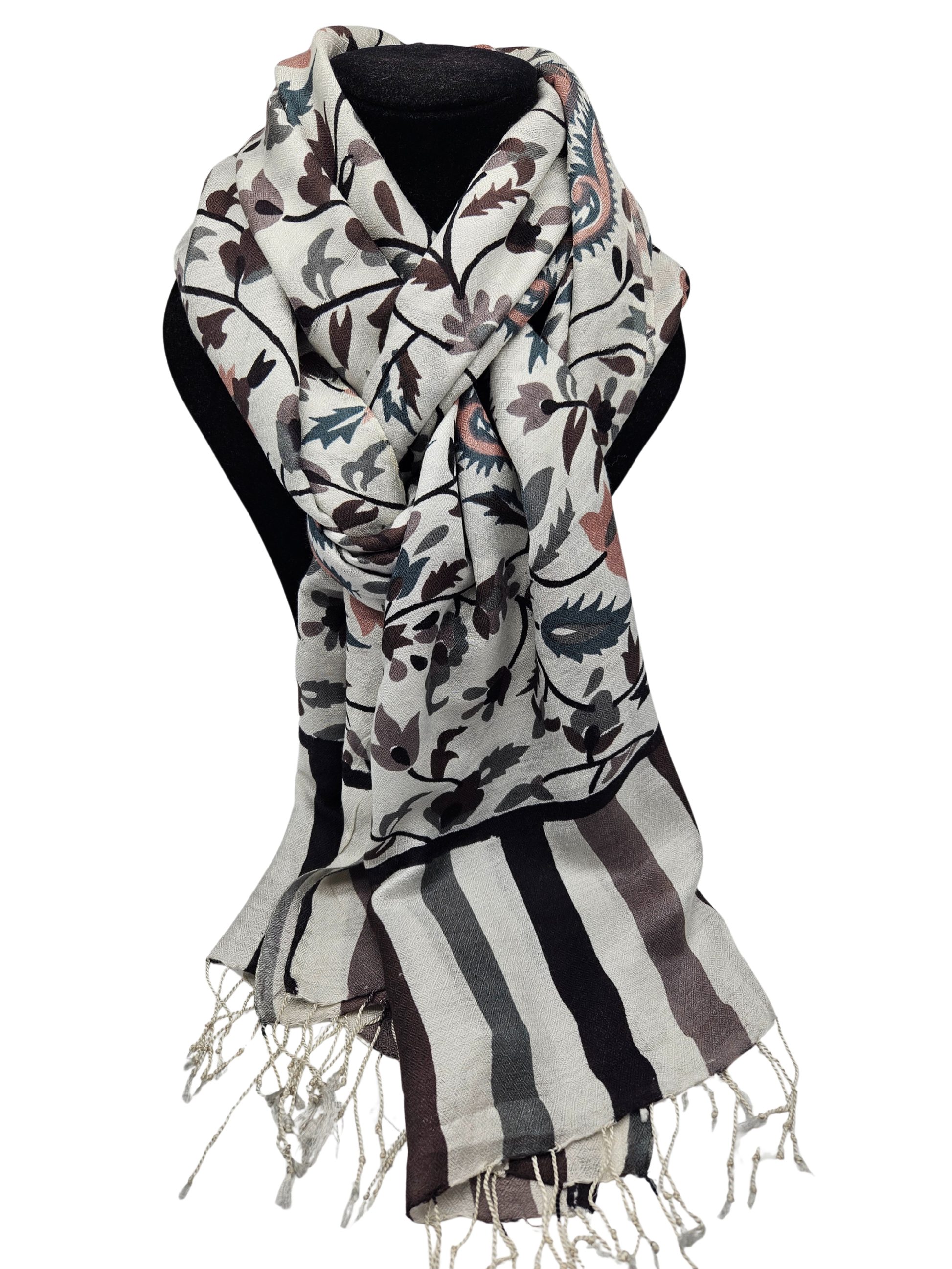 Esta preciosa mascada está hecha 100% de un suave algodón. Tiene buen peso y una linda caída