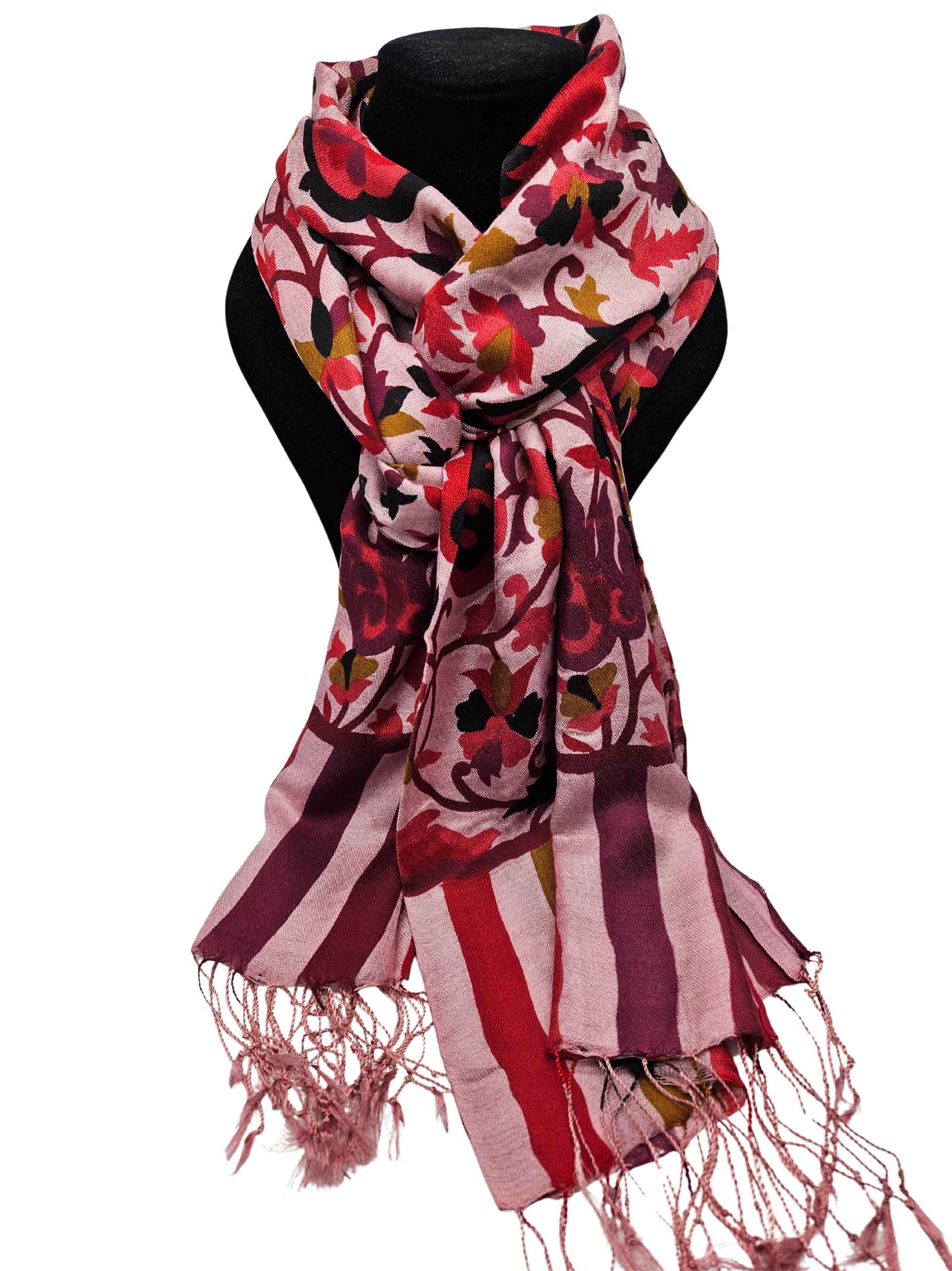 Esta mascada es muy práctica porque puede doblarse a un tamaño pequeño y cabe en cualquier bolso. Cuando se la necesita, está ahí a la mano para abrigar y acentuar el atuendo. Los brillantes colores de esta prenda la hacen muy lucidora.