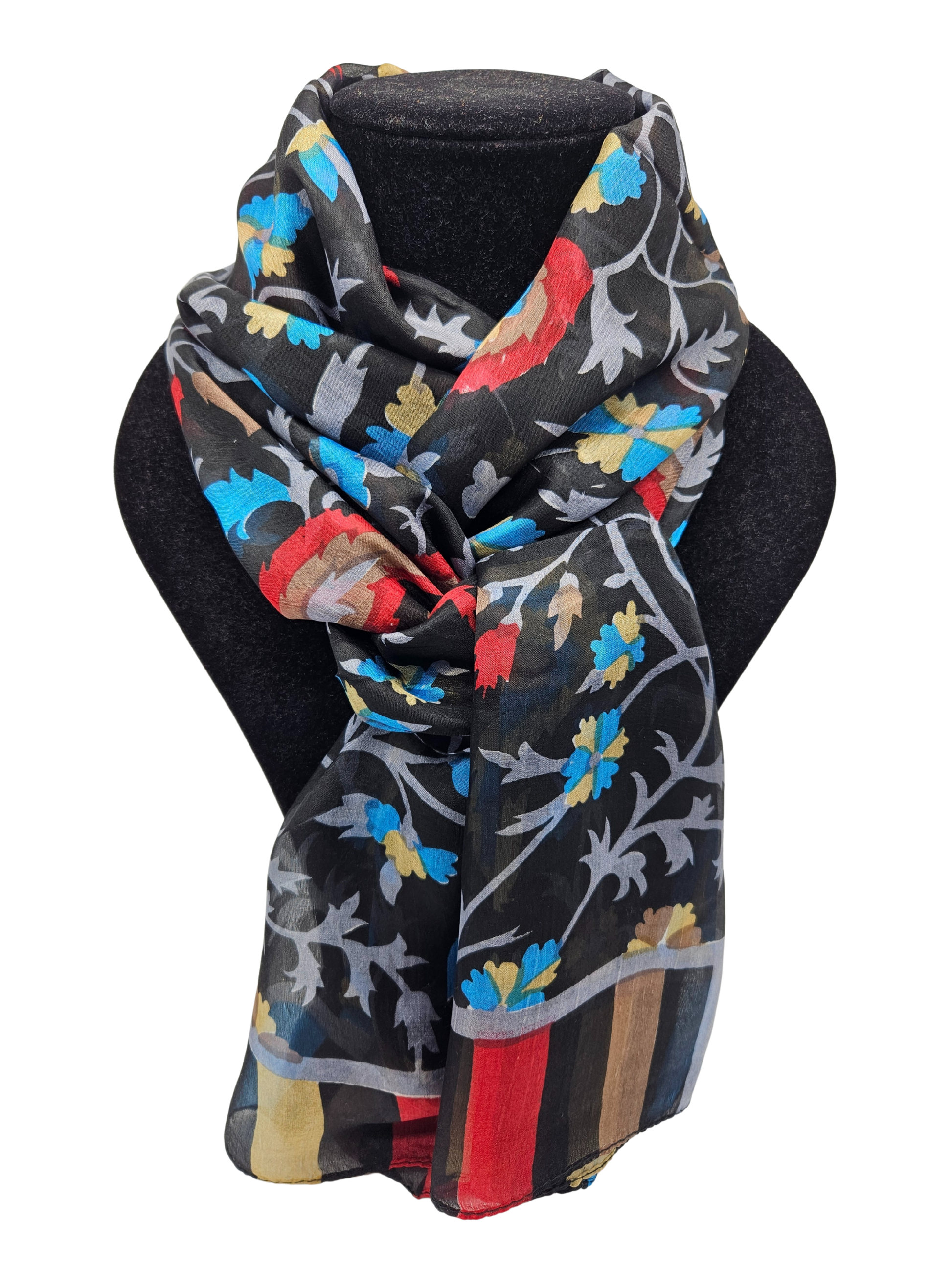 Esta preciosa mascada está hecha 100% de una suave y delicada seda.